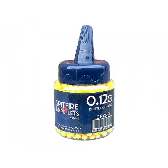 1 Tub of 1000 Spitfire Seamless Yellow 0.12g Plastic 6mm BB Gun Pellets. Multiple Quantity