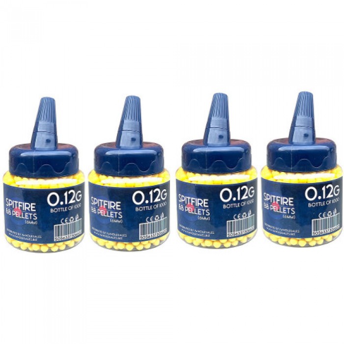 4 Tub of 1000 Spitfire Seamless Yellow 0.12g Plastic 6mm BB Gun Pellets. Multiple Quantity